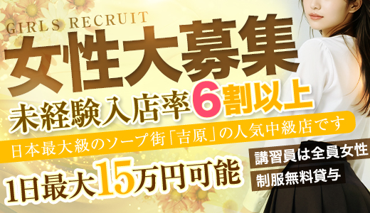 吉原随一の高級ソープ💎未経験者大歓迎!110分最大50,000円バック✨完全日払い&月雑費・在籍料の負担なし!完全フルリニューアルの清潔な店内で、伸び伸びお仕事できます♪