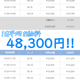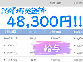 🔰嬉しい③つの入店特典🔰60分コースのバック【10,000円~】1日の平均お給料【48,300円】全額日払い制で毎日がお給料日