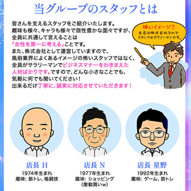 当店ではルールをお守りいただけないお客様は利用制限や出入り禁止などの処置を取らさせていただいております!ですので、女性の皆様もご無理をせずにそういうお客様がいらした際は遠慮なく我々スタッフにお申し付けくださいませ♪ 皆様が安心・安全に働きやすい環境づくりを徹底して作っていきますので今後ともよろしくお願いいたします!!