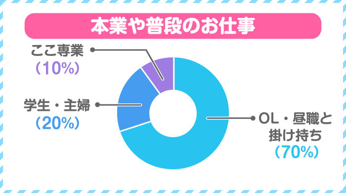 タッキー店長- 最も多いのは、仕事帰りに働くOLさんで、全体の6〜7割を占めています。その他は学生さんや主婦の方など、本業と両立されている方がほとんどですね。風俗専業の方は意外と少ないです。