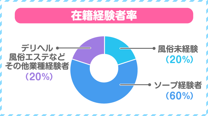 山中さんー 未経験は2割くらいで、ほとんどの方が他店のソープ経験者さんです。