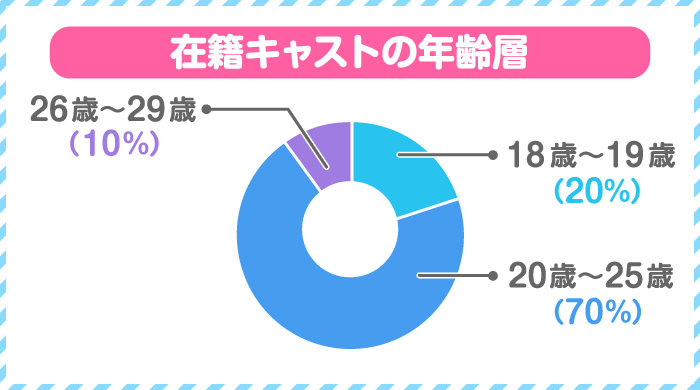 大塚さんー 制服コンセプトなので、20代前半がほぼほぼメインですね。そこに少し年上や18歳~19歳がいる感じです。見た目年齢でOKなので、顔の雰囲気が童顔っぽいと言われる方なら、年齢が不安な方もまずはご相談ください。