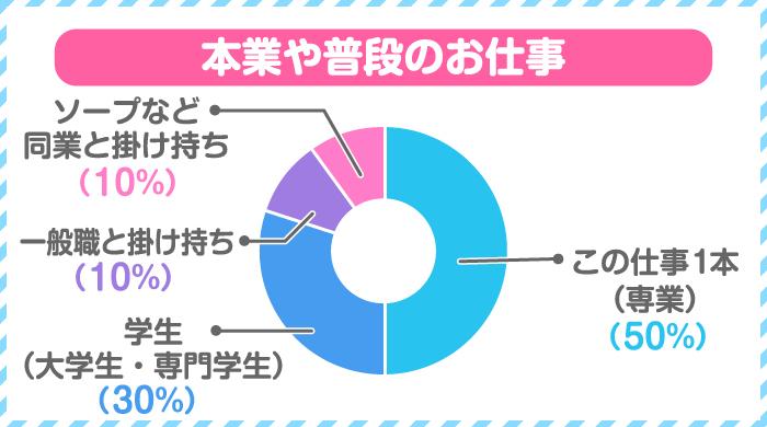 大塚さんー 若い方が多いので、普通に就職している方よりは、学生や風俗一本の方が多いです。掛け持ちに関しては、近隣エリアの同業種はちょっと難しいですが、別エリア・別業種なら大丈夫です。