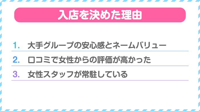 あとは女性スタッフの存在ですね。お店には男性スタッフもいますが、「男性が苦手で女性と話したい」という方もいるので、安心感があると思います。