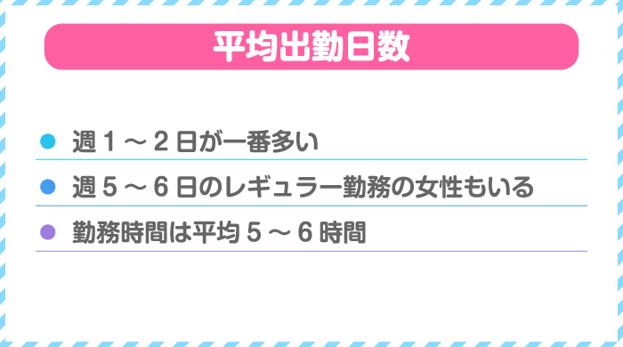 当店では「1日3万~5万円稼ぎたい」という希望が多いですが、「少しだけ生活の足しにしたいから1日1本でも付けばいいな」という女性もいらっしゃいます。