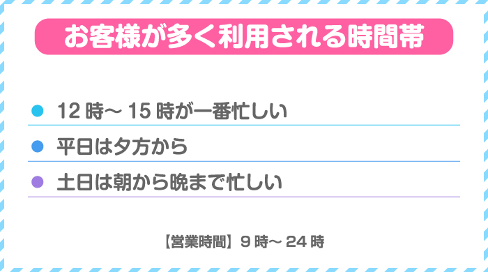マリモネさんー 待機場所が個室ブースに分かれているので、集団待機が苦手な方でもリラックスできます。それでいて、待機スペースと受付が一体型になっているので、スタッフと女性キャストさんの距離がとても近く、困ったことあればすぐに相談できます。孤立しづらい環境なので、居心地は良いと思います。