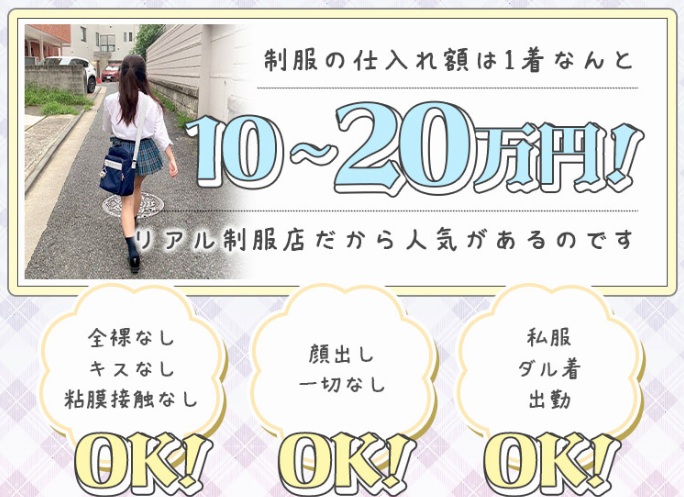 最大の特徴は、女性が制服のままホテルへ向かうという点です。一般的な派遣型のお店は私服でホテルに行って中で着替えることが多いと思うのですが、当店は違います。