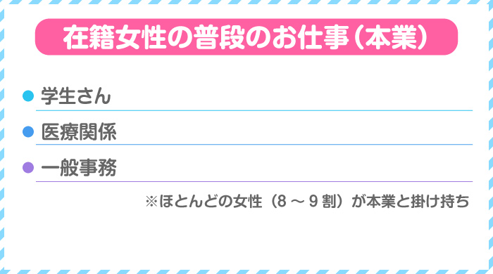 在籍女性の普段のお仕事(本業)