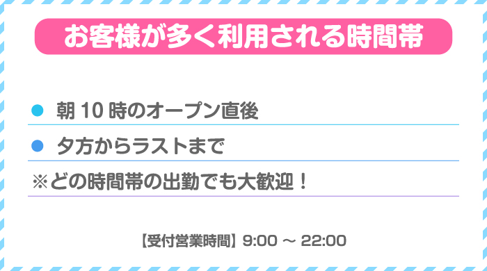 ちなみに当店はドライバーさんがいないスタイルなので、キャストさんは徒歩や公共交通機関、あるいは駅でお客様と待ち合わせをして、一緒にホテルへ向かう形をとっています。