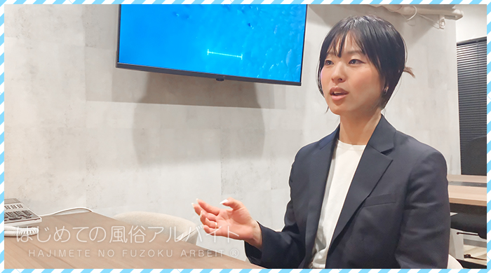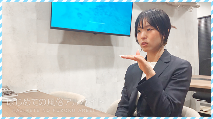 北村さんー まずは店舗型なので、受付でスタッフがお客様を確認しているというメリットがあります。特に完全未経験の女性に対しては、店長がしっかり対応してるんですよ。わざわざ受付へ出て来て、お客様に「新人さんなので絶対優しくしてくださいね」というように最初のご案内できっちり注意喚起しています。