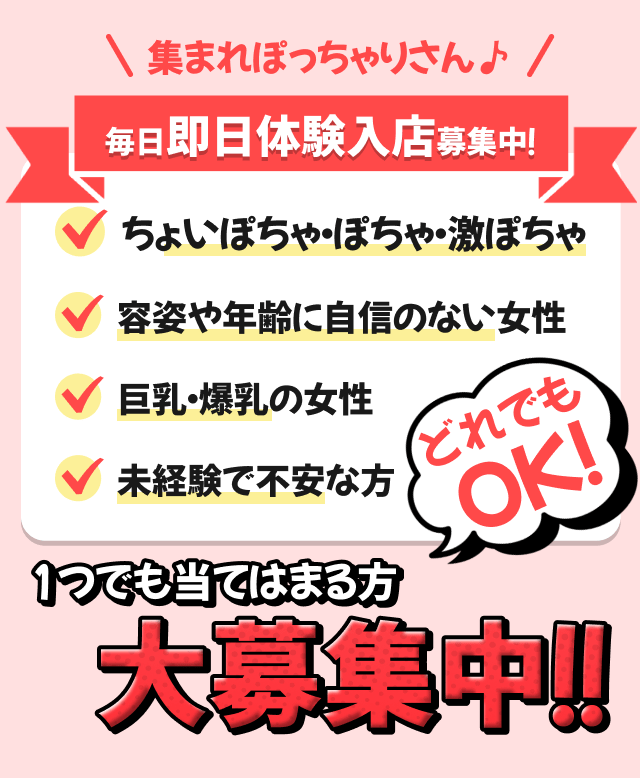 体型・年齢は一切問いません!ぽっちゃりさん”だからこそ”稼げるお店です!ちょいぽちゃさん(~60キロ台)~激ぽちゃさん