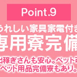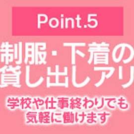- ノルマ/罰金なし 自由出勤OK 個室待機可 託児所紹介あり 寮あり 送迎あり アリバイ対策あり 性病対策あり 制服/衣装貸与 コスプレができる