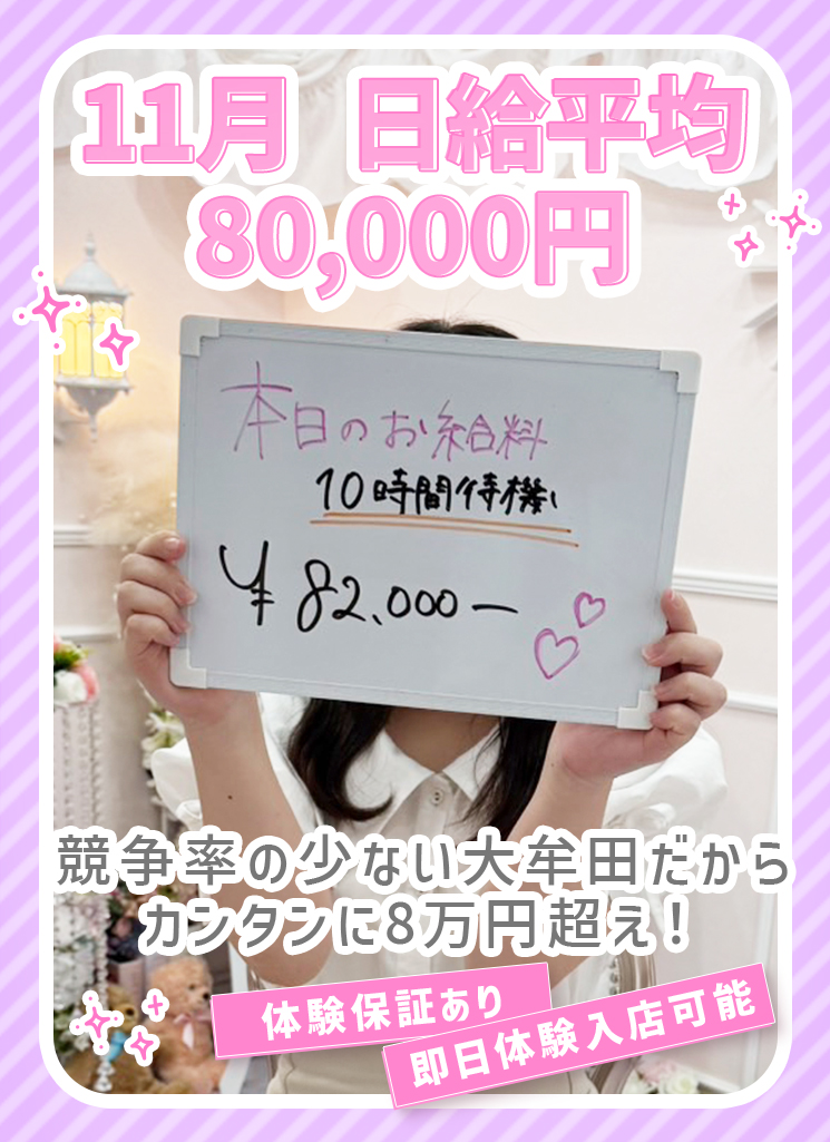 保証があるから安心して体験入店が出来る!在籍女子の8割以上が未経験入店♡即日体験入店7万円保証可能♪4泊5日で35万円保証♪60分最大11,000円+αバック 女性スタッフ在籍・無料送迎あり・個人寮あり