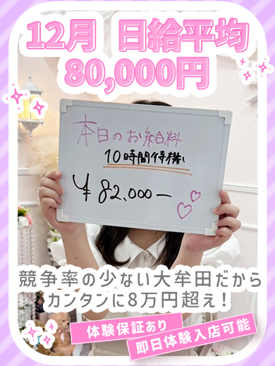 保証があるから安心して体験入店が出来る!在籍女子の8割以上が未経験入店♡即日体験入店7万円保証可能♪4泊5日で35万円保証♪60分最大11,000円+αバック 女性スタッフ在籍・無料送迎あり・個人寮あり