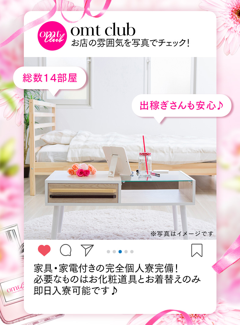 - 写メ日記強制なし ノルマ/罰金なし 自由出勤OK 個室待機可 自宅待機/勤務可 生理中勤務可 託児所紹介あり 寮あり 送迎あり アリバイ対策あり 性病対策あり 制服/衣装貸与 コスプレができる 女性運営スタッフ在籍