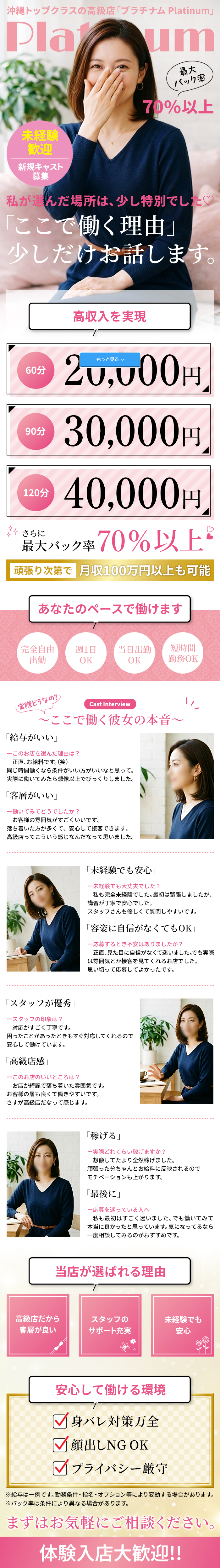 前までは県外に出稼ぎとか行ってたんですがプラチナムに入店して出稼ぎに行かなくてよくなりました。