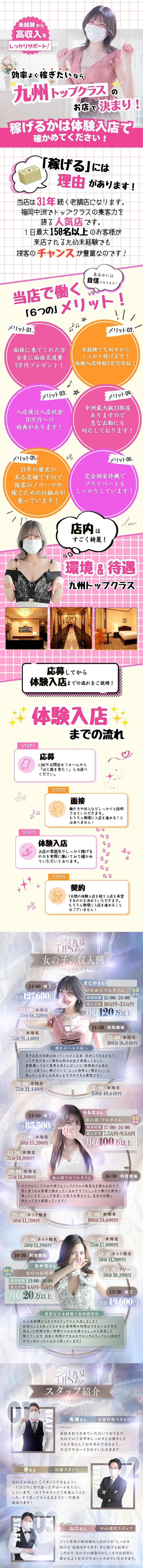\業界最高峰のバック率!!/接客3本で9万円Over可能✨半数以上が未経験▶スタッフによる万全のサポート体制!レギュラー、掛け持ちどちらでも♪九州業界大手でアリバイ・身バレ対策も万全!