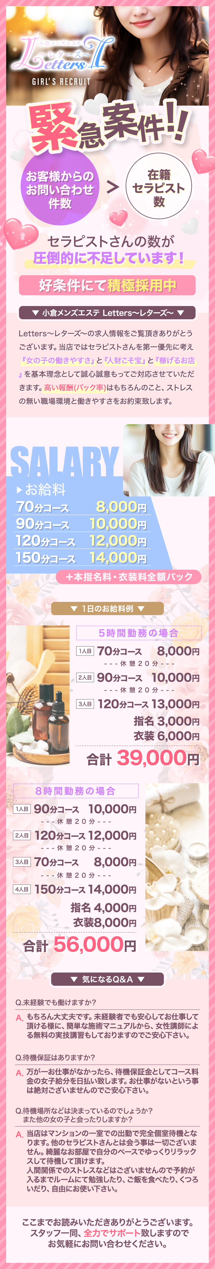 考えております。セラピストさんがイキイキして輝けるようなお店を目指しております。