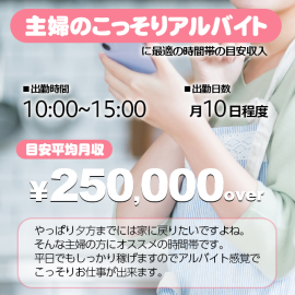 ちょっとそこの奥さんでは、Wワークの方やご家庭・お仕事をお持ちの方も多数在籍しております。
