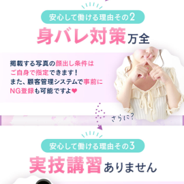はい、写真の顔出しは任意ですし、店舗型なので外移動がなく、お客様と一緒に外にいるところを誰かに見られる心配もありません。