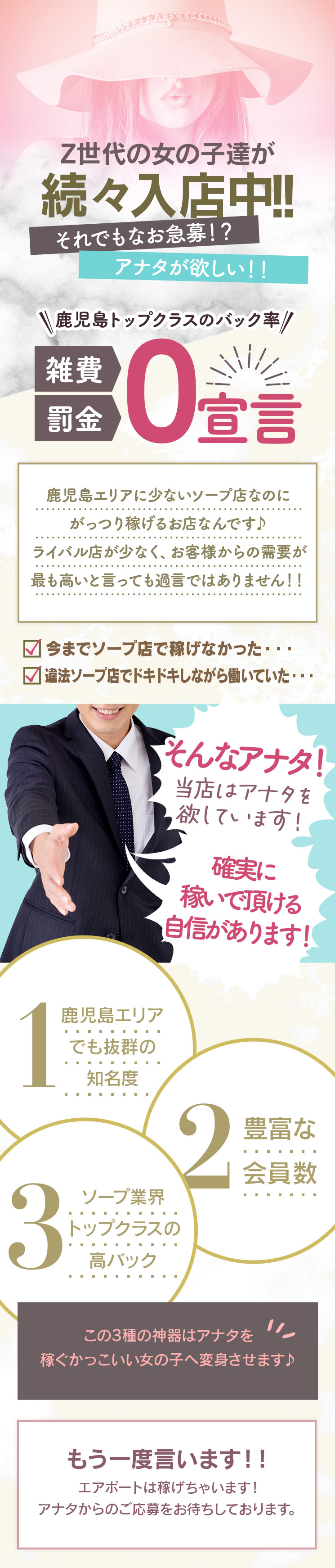 \Z世代が続々入店中!/鹿児島トップクラスのお給料システム【雑費0円・罰金なし・特別報奨金制度あり!】日給10万円以上可能!