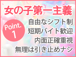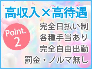 - 体験入店(体入)可 即日勤務可 オンライン面接OK 実技講習なし 入店祝金/ボーナスあり