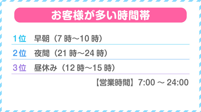 あとは送迎ですね。退勤後も、市内500円、市外1,000円で北九州方面までどこまでもご自宅へお送りしますので、夜遅くなっても安心ですよ。