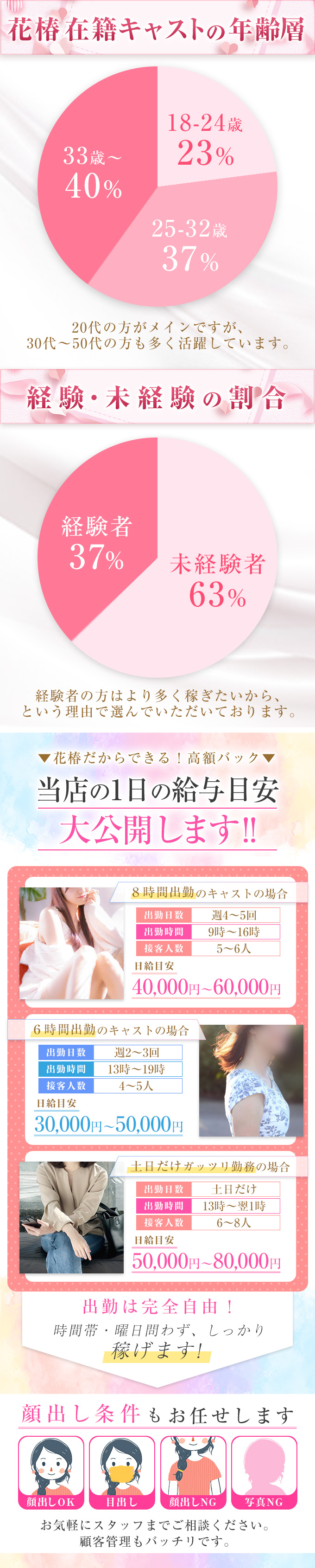 保証は全キャストについております!しっかり努力して成果を出している方が安定して稼げるようなシステムになっておりますよ!