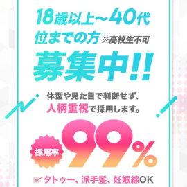採用率99%!ほとんどが業界未経験の女の子だから自信がない方でも大歓迎!容姿・経験など関係なくお仕事できるお店です☆