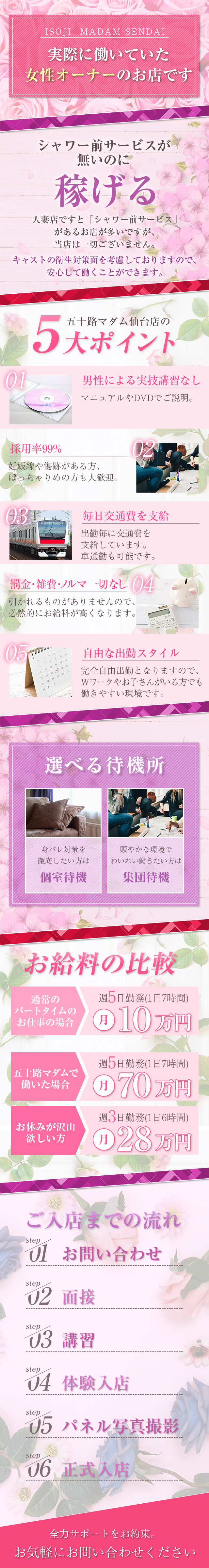 仙台周辺で本当に安心して働ける高収入のお仕事をお探しなら、ぜひ『五十路マダム仙台店』へご連絡ください。