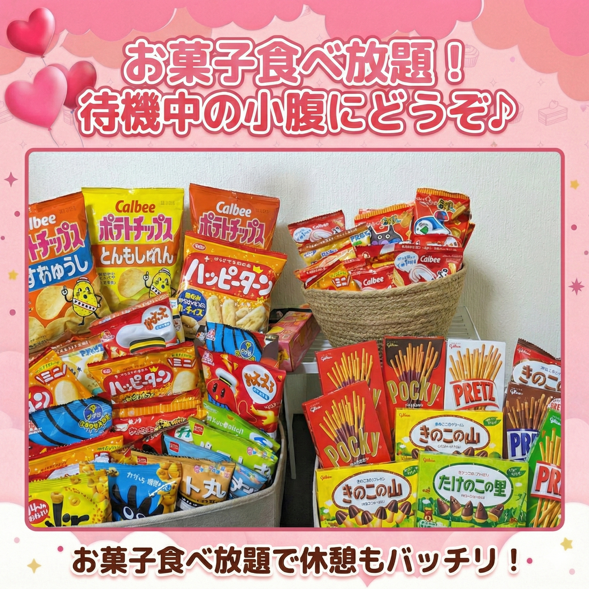 ★ 完全個室待機(Wi-Fi・お菓子食べ放題♪)