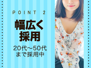 20代~50代まで幅広く採用中☆見た目年齢OK!容姿や体型に自信がない、年齢が若くないといった悩みも関係なし!