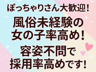 ぽちゃっ娘・おデブさん大歓迎!ぽっちゃり専門店だから巨乳・巨尻・体重の重い女の子が活躍できます★女性スタッフ常駐で待遇も充実!個室待機でさらにはなんとお菓子食べ放題!楽しく安心して働けるお店作り中!