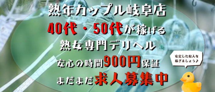 話題沸騰の熟年カップル岐阜に!ソフトサービスだけで稼げる「熟女専門デリ」入店から退店までずーっと時間保証♪「時間保証1時間900円」