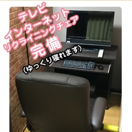 雑誌やマンガ、インターネットやテレビなんかもご用意してありますので、退屈する事がないと思います♪もちろん各部屋が、 仮眠部屋としても対応可能な大きな部屋になっていますので、