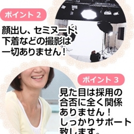 メリット2 顔出し、セミヌード、下着などは撮影は一切ありません。