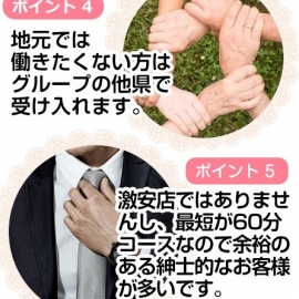 メリット5 激安店ではありません。最短が60分コースなので余裕のある紳士的なお客様が多いです。