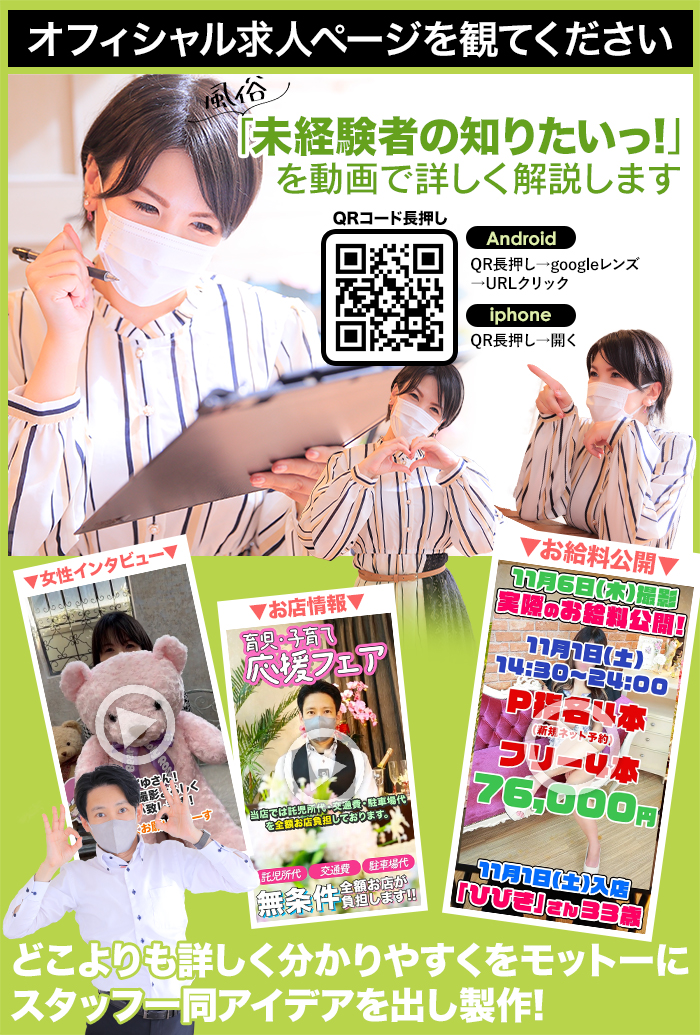 【Iphone】QR長押し>開く【アンドロイド】QR長押し>googleレンズ>URLクリック 在籍女性に『動画でインタビュー」